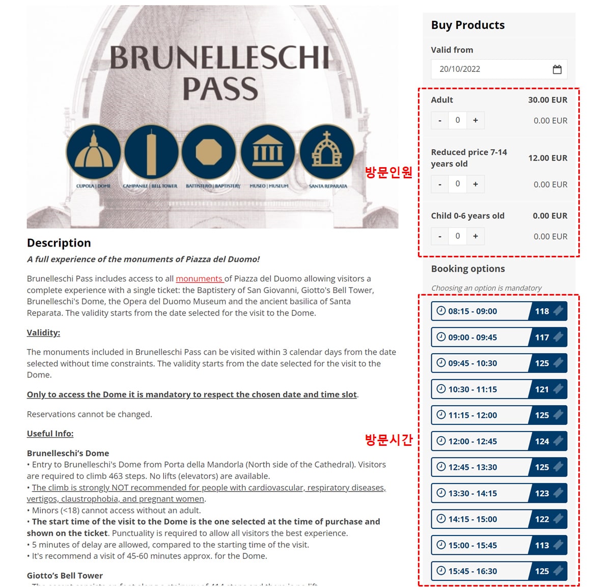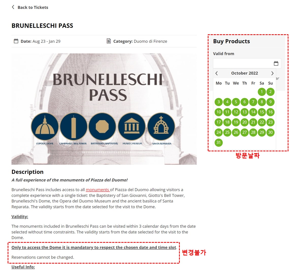 6. 예약일자는 쿠풀라 입장일자에요, 피렌체 두오모 쿠풀라 입장 날짜와 시간을 정하면 변경은 불가능해요.