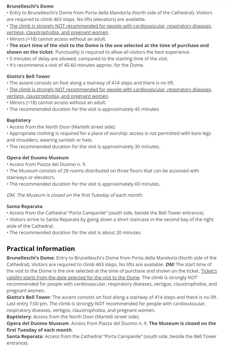 8. 피렌체 두오모 쿠풀라 통합권으로는 사실상 피렌체 주요 관광지중 대부분 입장을 할 수 있다고 생각하면 돼요. 각각의 관광지들은 운영시간과 휴무일이 따로 있으므로 아래 Practical Information에서 입장시간과 휴관일을 체크해보세요.