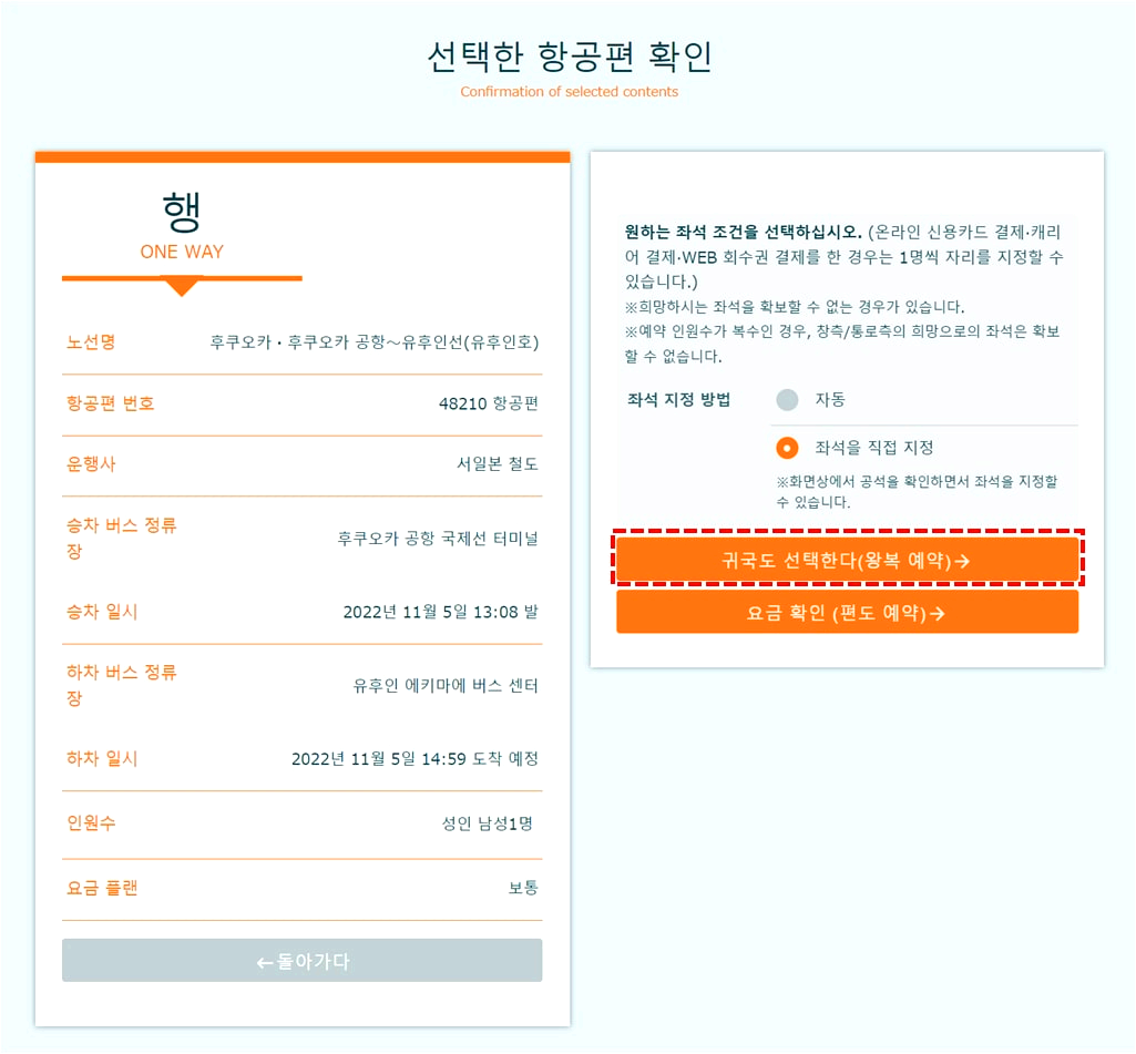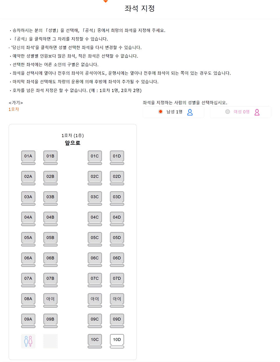 8. 좌석의 경우 원하는대로 선택하되 일본의 경우 아이전용좌석이나 여성전용 좌석이 있기 때문에 해당부분은 잘 보고 선택해주셔야해요.