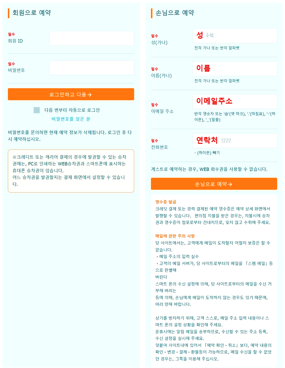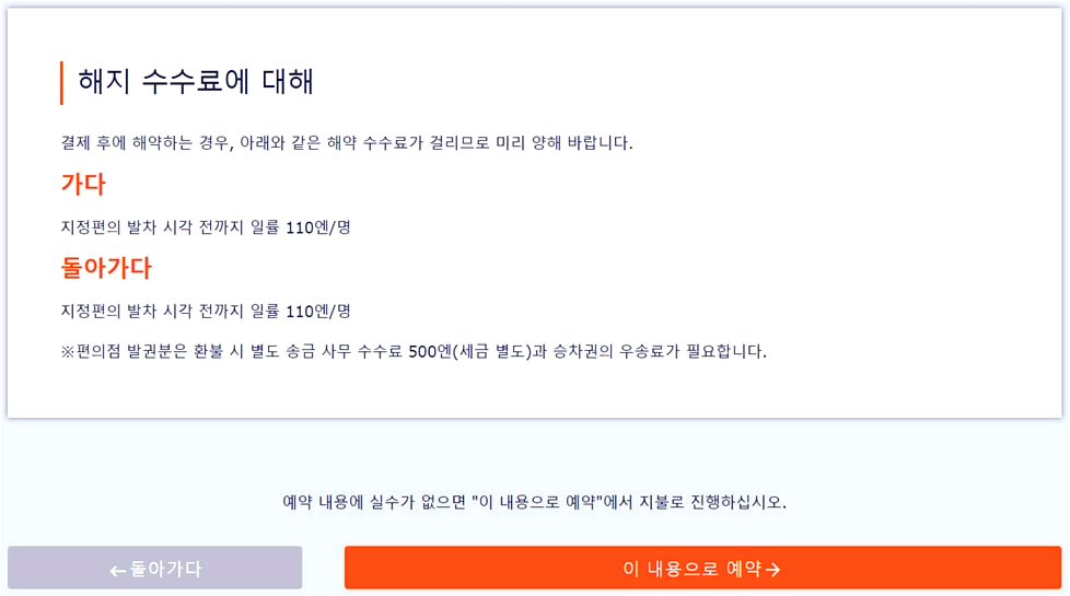 13. 출/귀가편의 경우 결제 이후 취소시 110엔 약 1,100원의 비용이 발생하지만 크게 부담되는 비용이 아니니 혹여나 좌석이 없어 탑승을 못하는 것보단 예약을 진행해주세요.