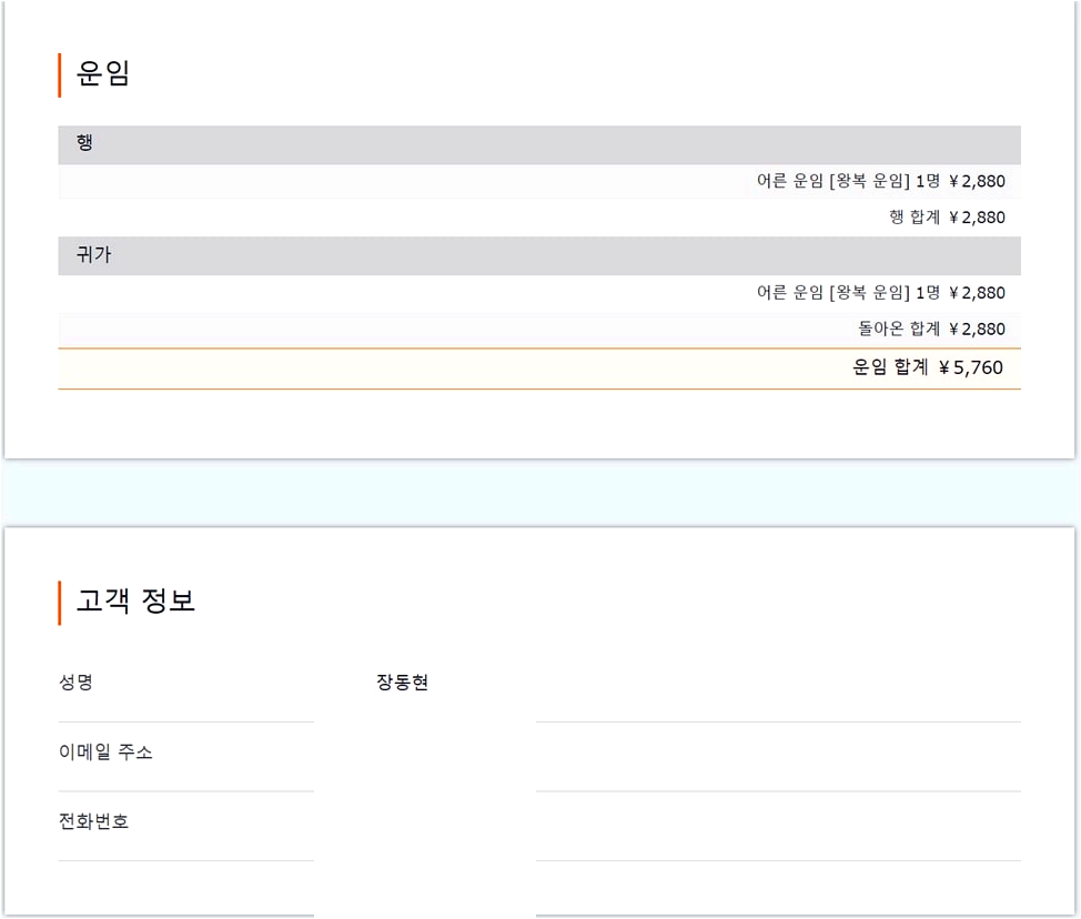 왕복으로 예약시 : 2,880엔 *2 = 왕복 5,760엔 (한화 약 57,600원)
