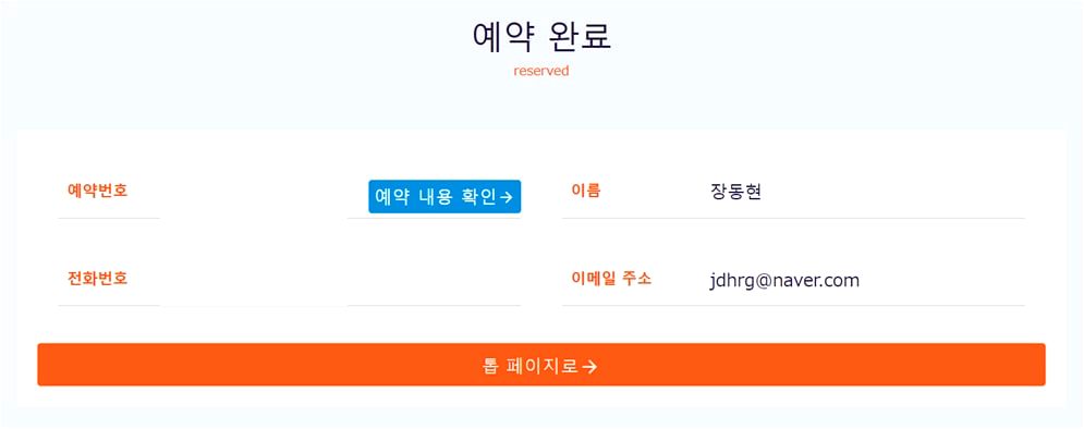 14. 예약이 완료되었어요. 이제 입력했던 이메일로 이동해서 예약메일을 확인해주세요.