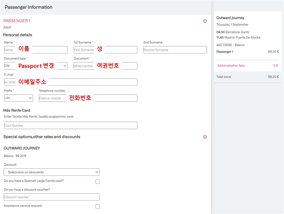 스페인 여행준비 렌페(RENFE) 기차 예약방법