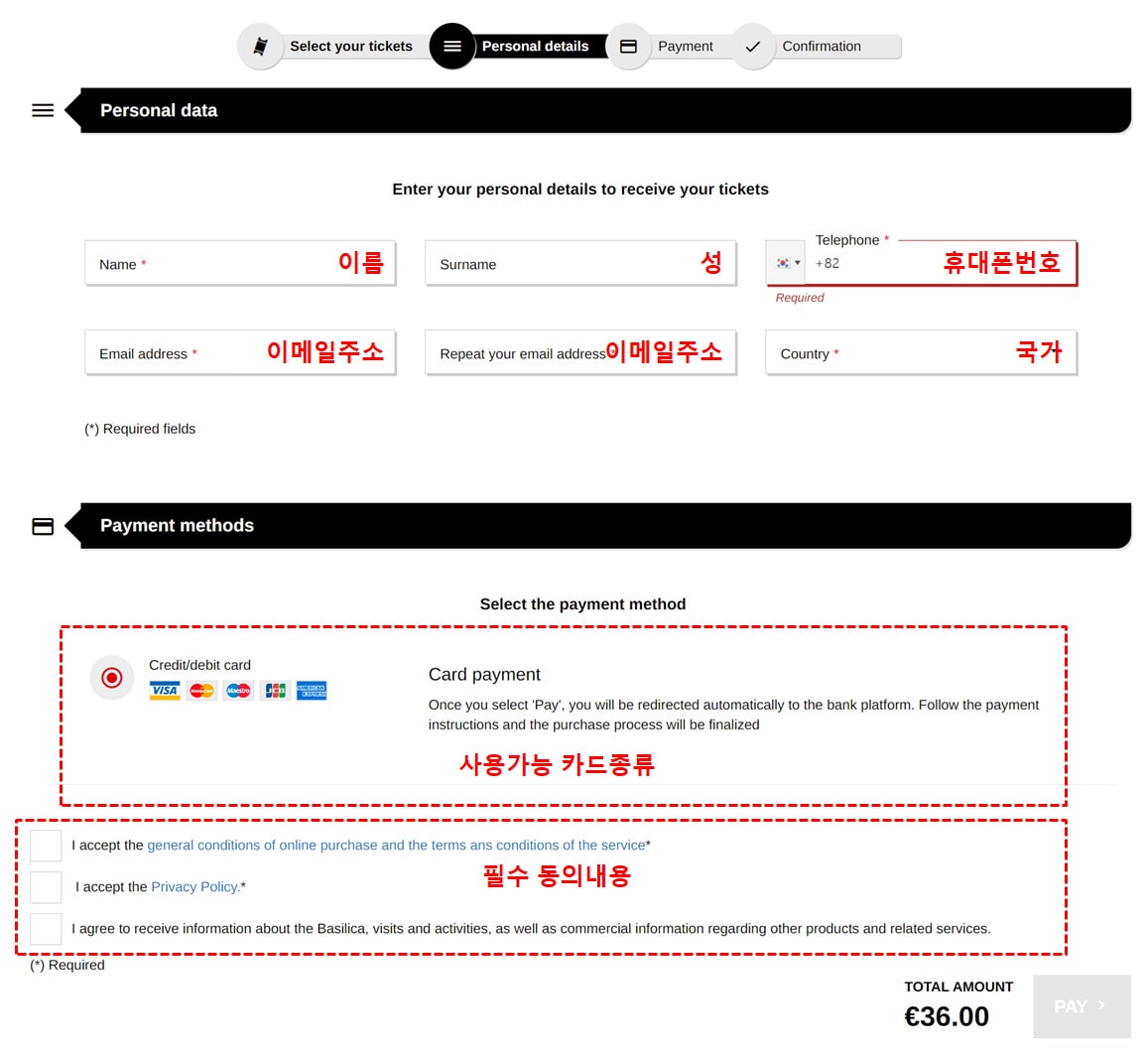 12. 티켓을 구매할때에는 달러, 유로 결제가 있는데 유로 결제를 하셔야 환율수수료가 적게나와요.